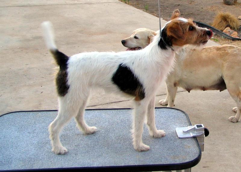 Color: Tri; Coat: Light Broken; Height (7 mos) = 12-7/8"