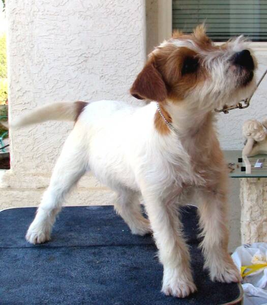 Color: White with tan markings; Coat: Broken; Height: 31 cm (12.2")